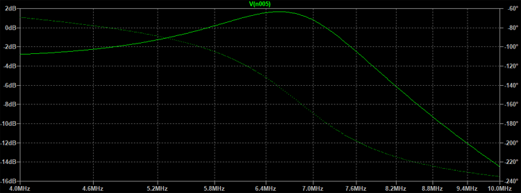 如您所見,濾波器的頻率響應(yīng)是一個低通,具有一個在14MHz的諧振峰,如果Q較低,則諧振峰是由濾波器具有較高的Q引起的,該濾波器將是沒有峰的低通。如果我們想要一個不同的Q,那么該濾波器將具有更高的帶寬,我們將需要使用PI濾波器,因?yàn)?/span>L濾波器的Q取決于源電阻和負(fù)載電阻。如果使用此電路來匹配電子管或晶體管的輸出阻抗,則需要從濾波器的電容器中減去輸出至地的電容,因?yàn)樗鼈兪遣⒙?lián)的。如果我們使用集電極-發(fā)射極電容(即輸出電容)為10pF的晶體管,則C的電容應(yīng)為19.1 pF,而不是29.1 pF