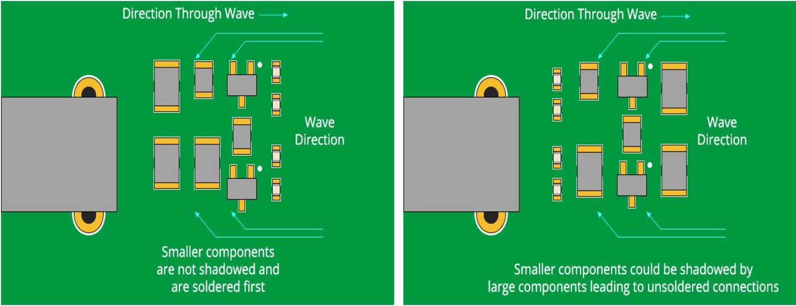 2、位置,避免將組件放置在板的焊料一側,否則將放置在鍍通孔組件的后面。