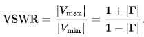 傳輸線中最大電壓和最小電壓的絕對(duì)值之比稱(chēng)為電壓駐波比或VSWR。通過(guò)傳輸線的低VSWR意味著電子設(shè)備連接良好,并且電流中的任何中斷都將更容易找到。VSWR由以下公式定義。