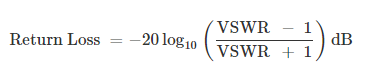 盡管存在許多表格可以在VSWR和回波損耗之間進(jìn)行轉(zhuǎn)換,但也可以使用以下公式在它們之間進(jìn)行轉(zhuǎn)換。