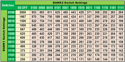 表2:12個(gè)開關(guān)設(shè)置的BANK1和BANK2的要求值