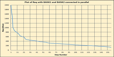 5. BANK1(R = 1000Ω)和BANK2(R = 910Ω)電阻器(帶SS)的Req變化,步長按順序排列以獲得單調(diào)遞減的電阻值